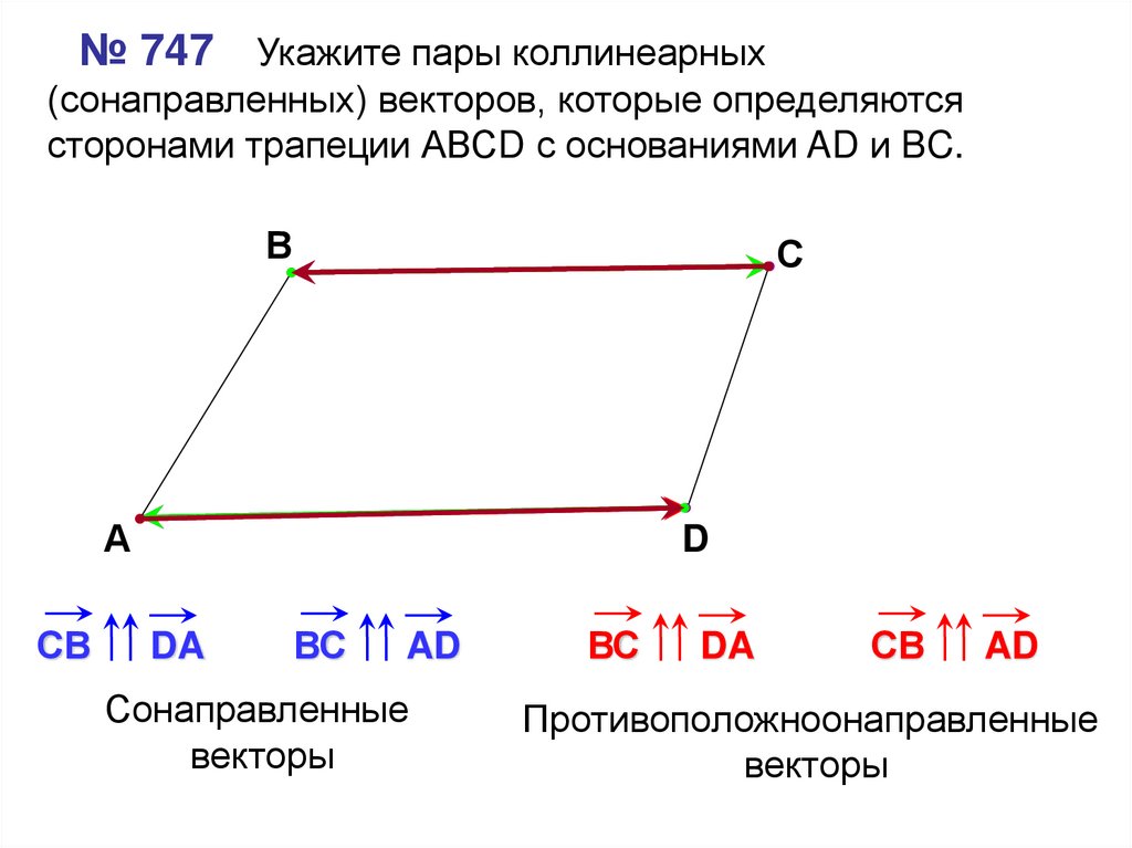 № 747 Укажите пары коллинеарных(сонаправленных) векторов, которые определяются