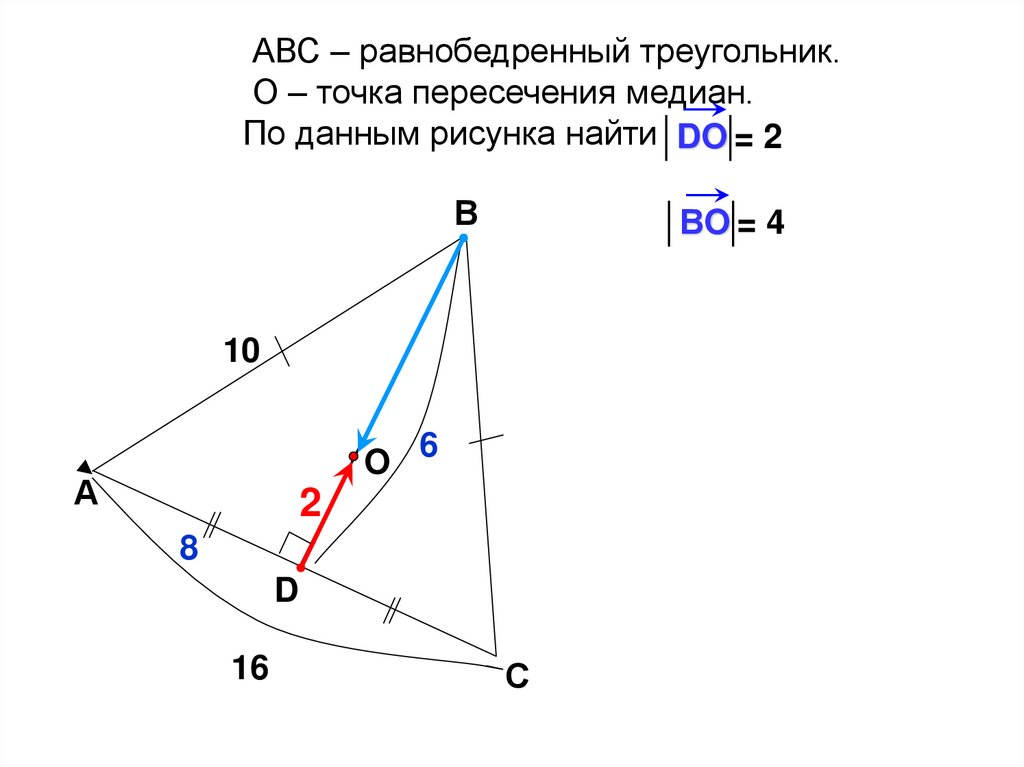АВС – равнобедренный треугольник.О – точка пересечения медиан.