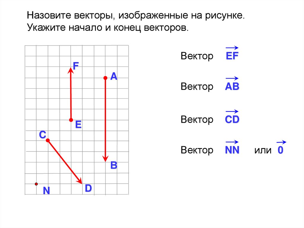 Назовите векторы, изображенные на рисунке.Укажите начало и конец векторов.