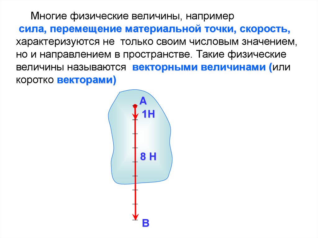 Многие физические величины, напримерсила, перемещение материальной точки, скорость,