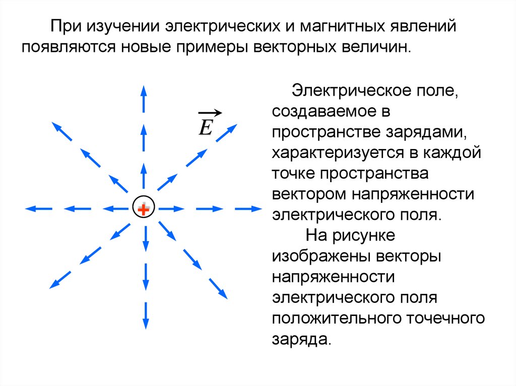 При изучении электрических и магнитных явленийпоявляются новые примеры векторных величин.