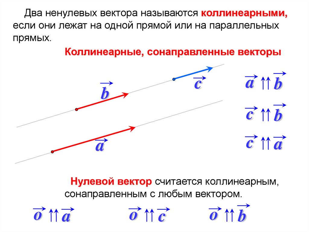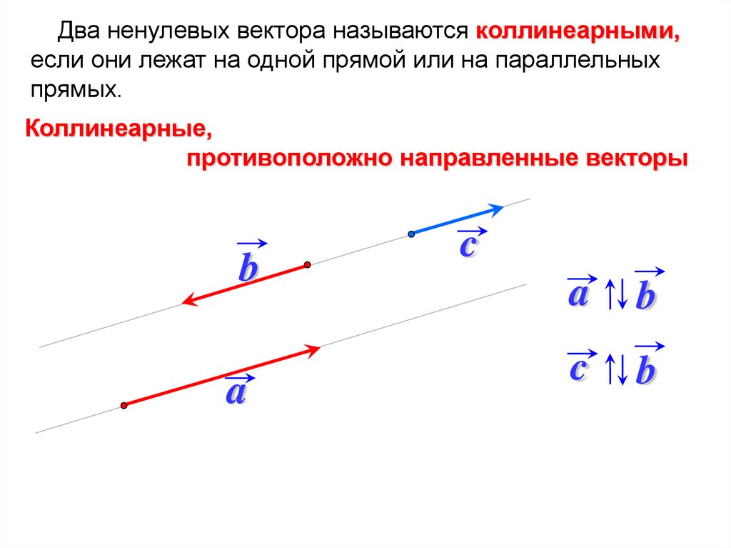 Два ненулевых вектора называются коллинеарными,если они лежат на одной прямой или на параллельных