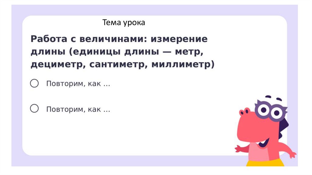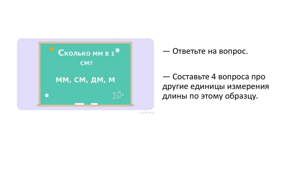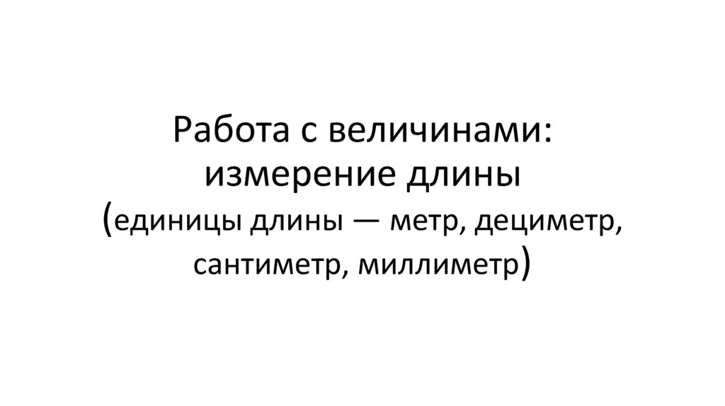 1. Работа с величинами: измерение длины (единицы длины — метр, дециметр, сантиметр, миллиметр)