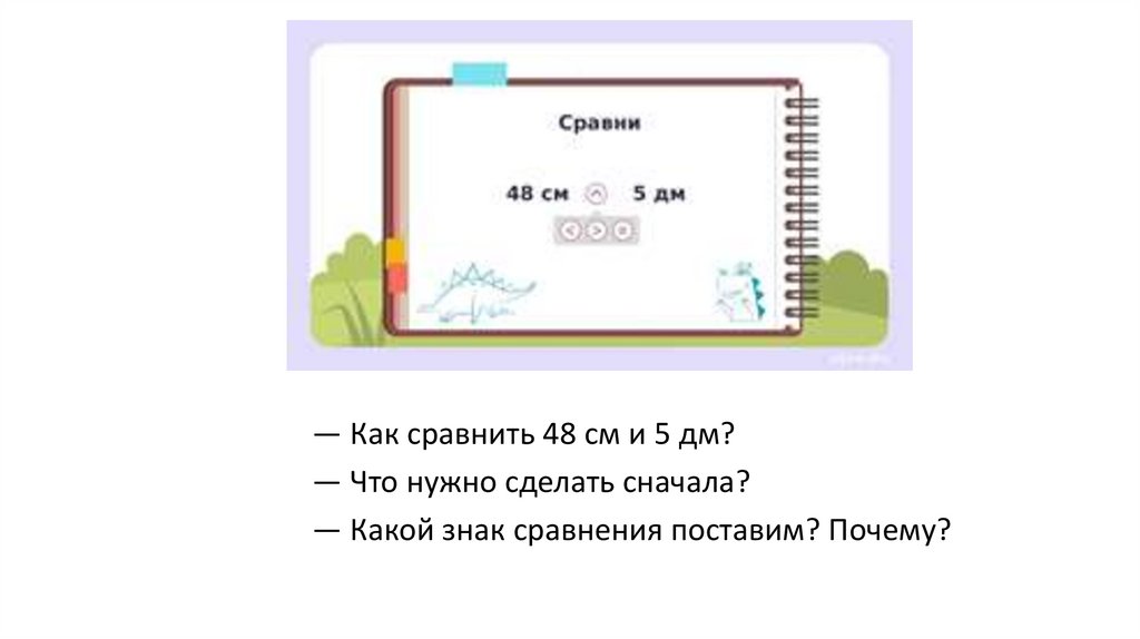 — Как сравнить 48 см и 5 дм?— Что нужно сделать сначала?
