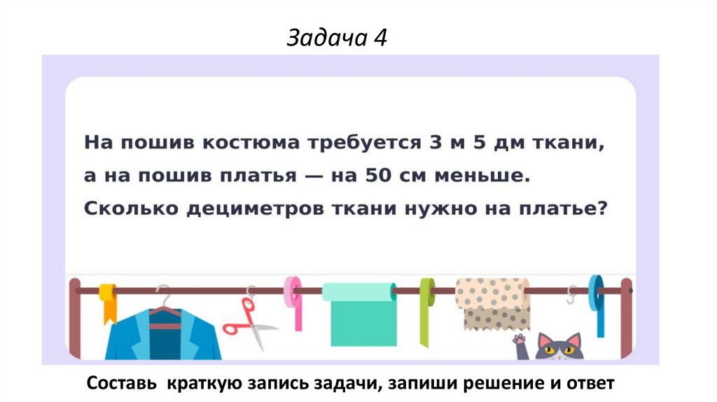 Задача 4Составь краткую запись задачи, запиши решение и ответ