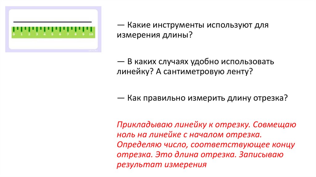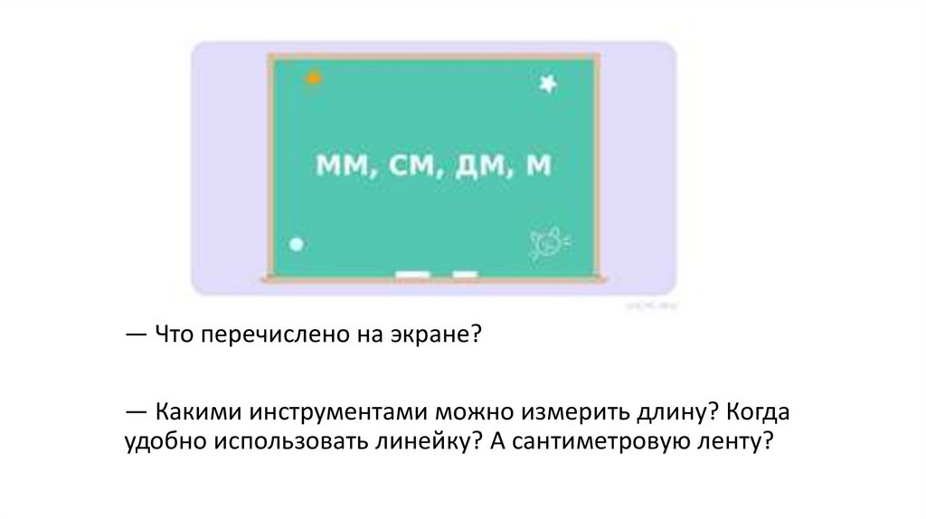 — Что перечислено на экране?— Какими инструментами можно измерить длину? Когда