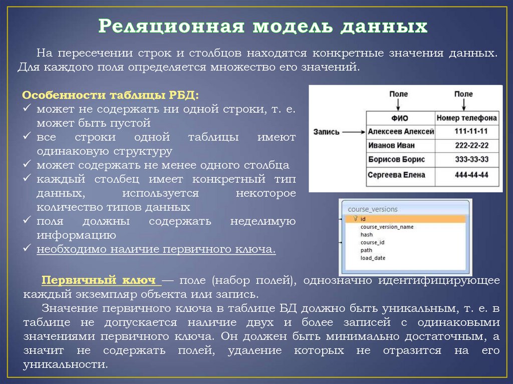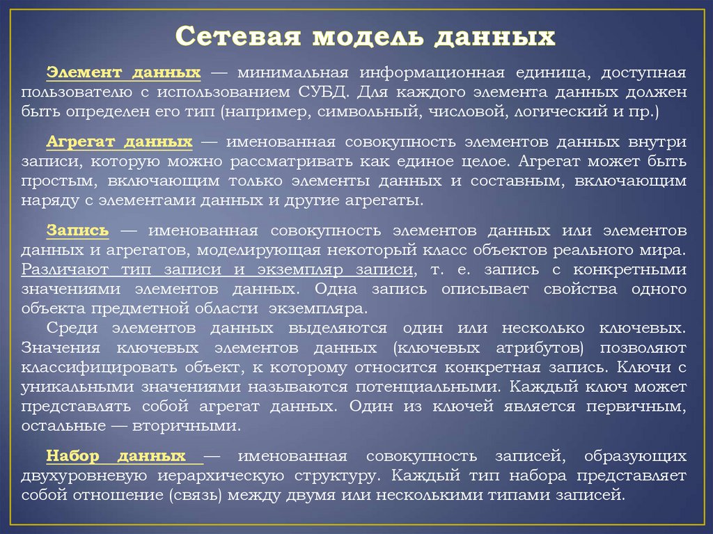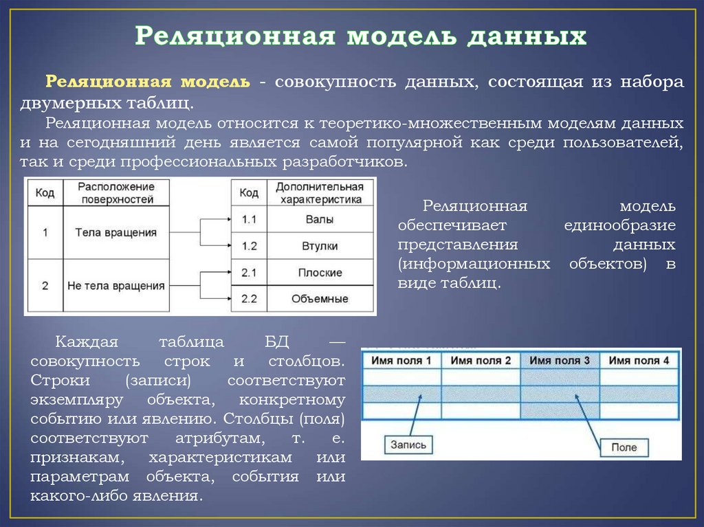 Ядром любой базы данных является модель данных.Модель данных — это формальная теория представления