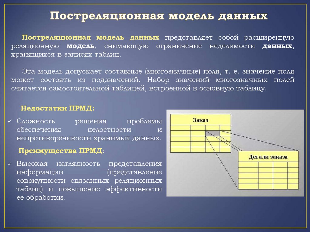 моделях данных, расширяющих известные модели: объектно-реляционные,