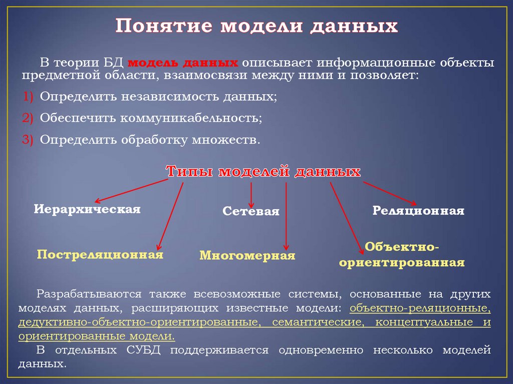 В отдельных СУБД поддерживается одновременно несколько моделей
