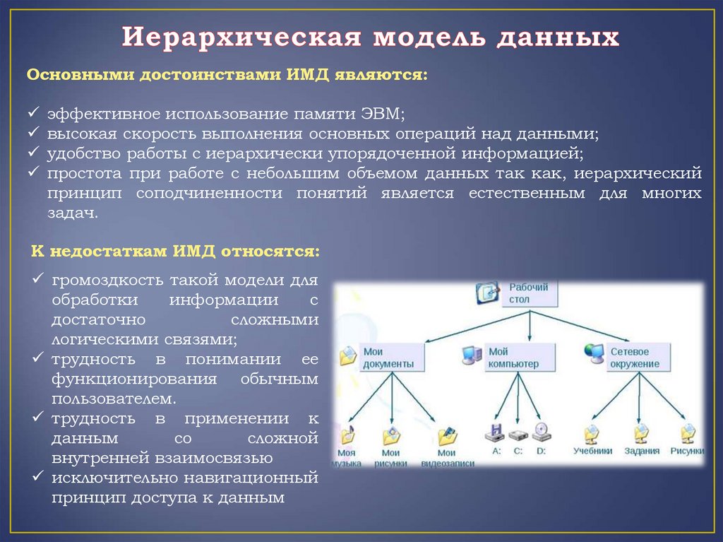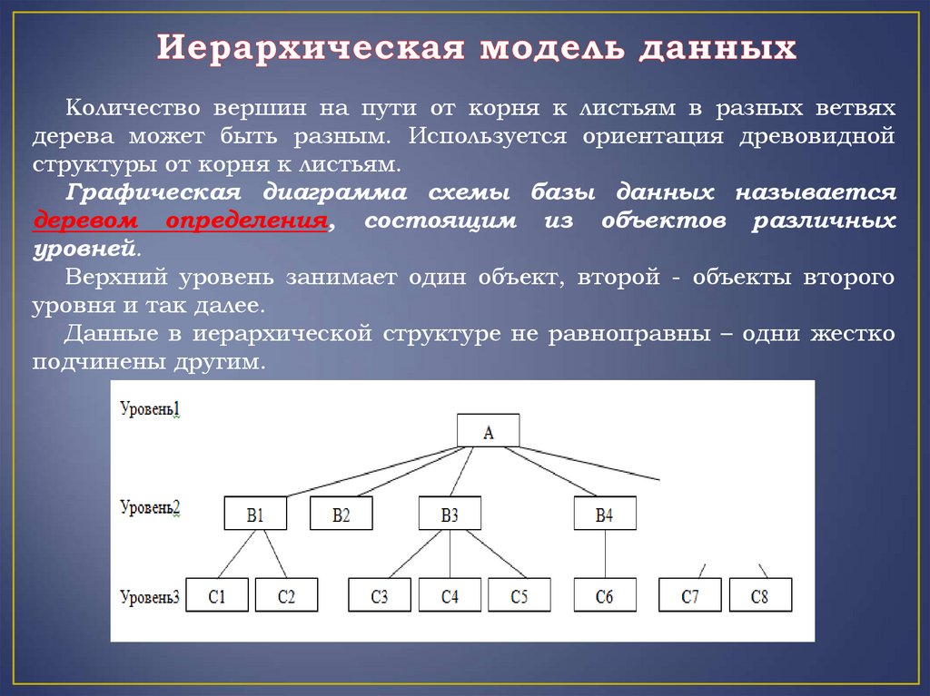 Данные в иерархической структуре не равноправны – одни жестко
