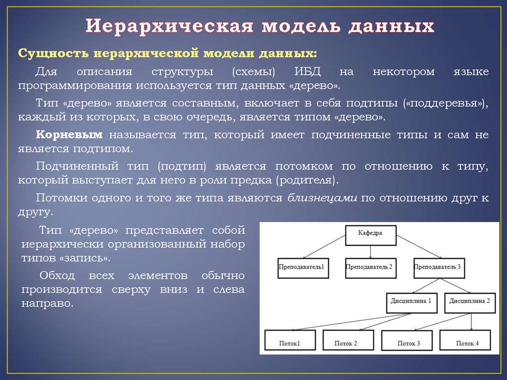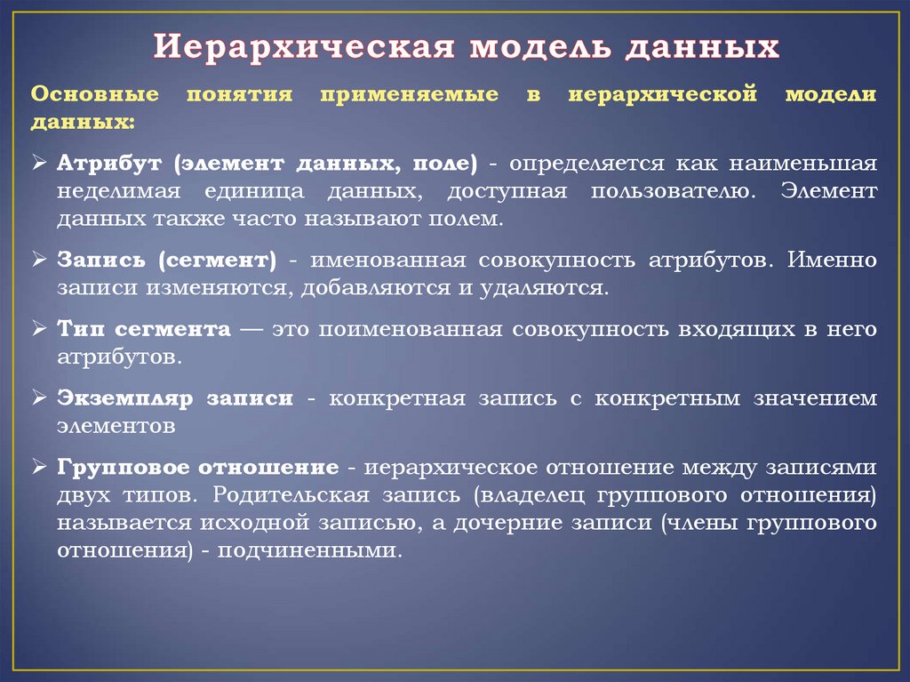 Сущность иерархической модели данных:Для