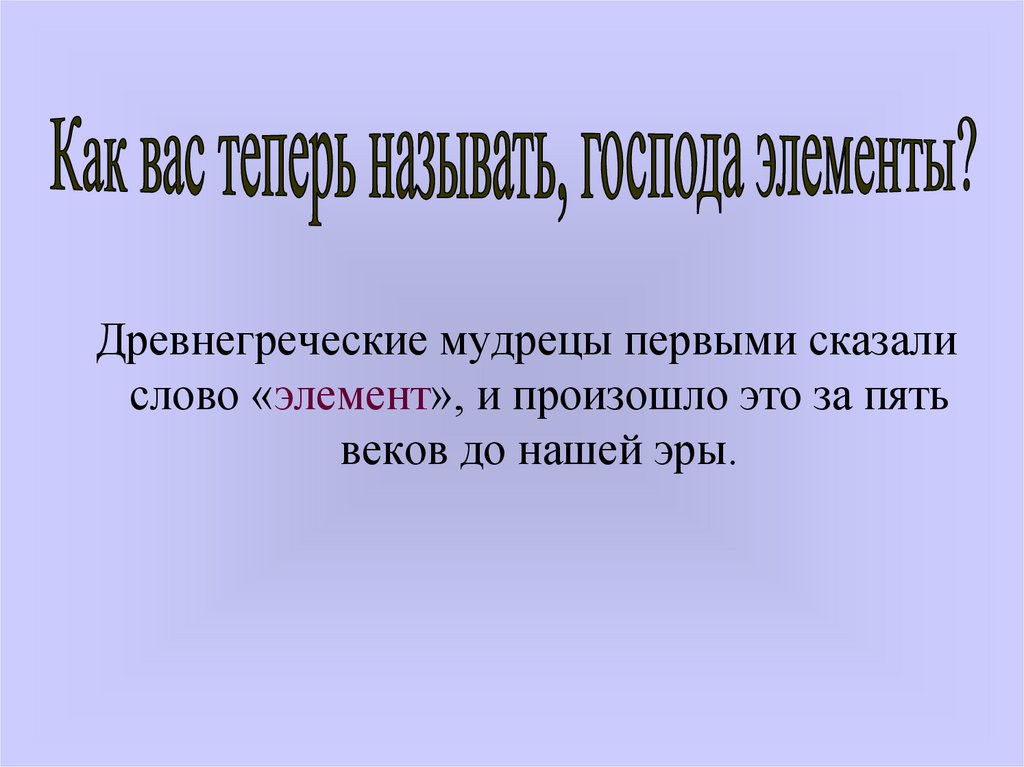Древнегреческие мудрецы первыми сказалислово «элемент», и произошло это за пять