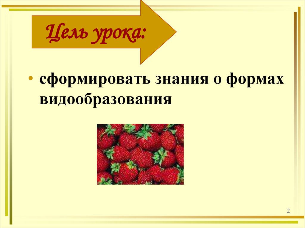 Цель урока:• сформировать знания о формах