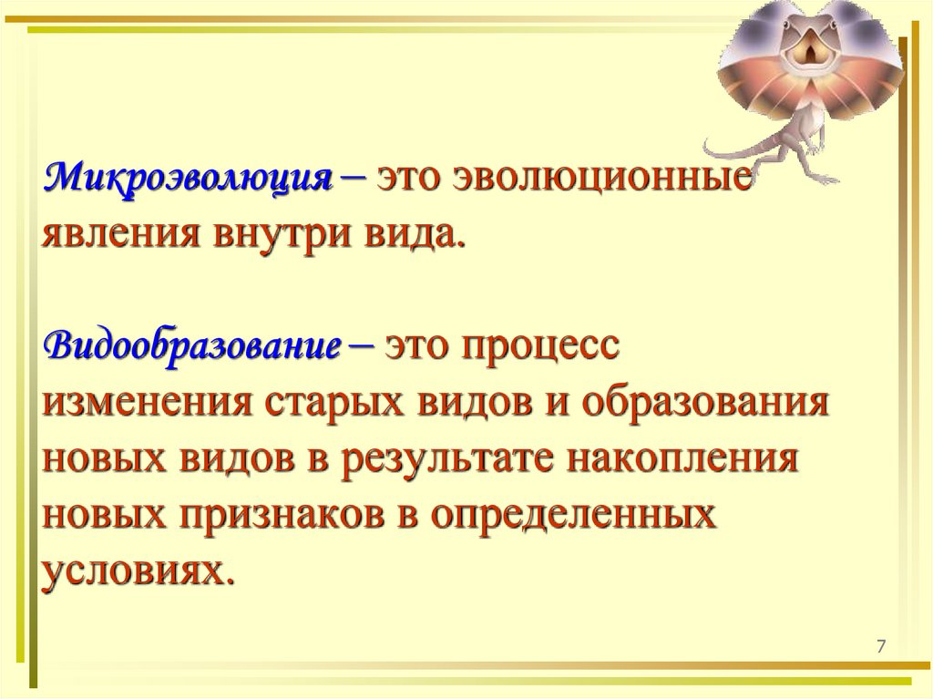 Микроэволюция – это эволюционныеявления внутри вида.