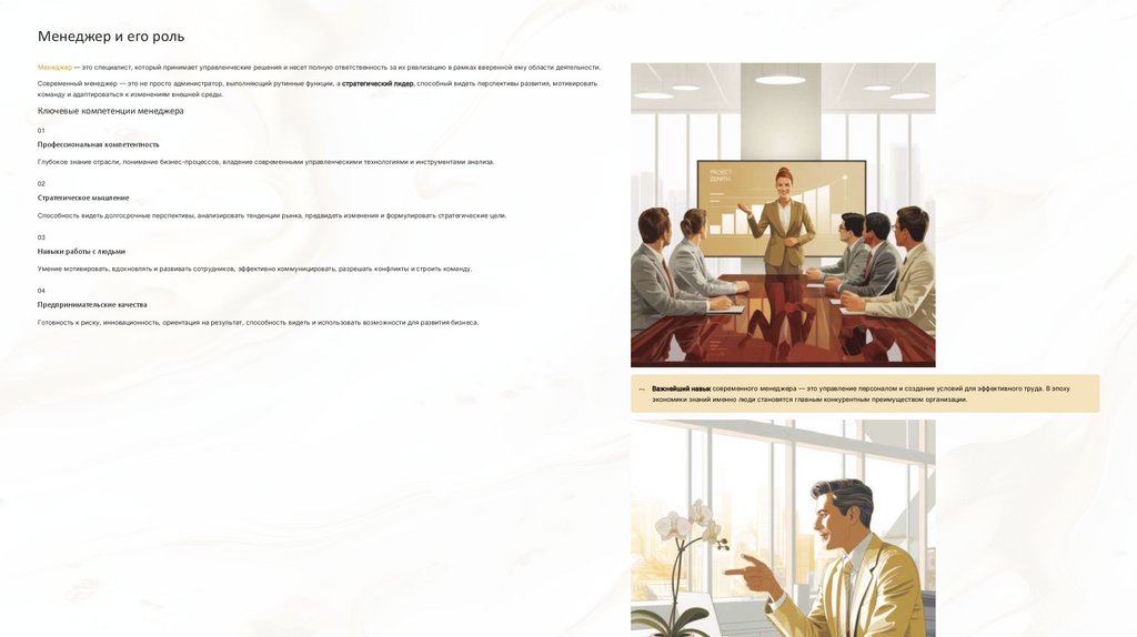 Современный менеджер — это не просто администратор, выполняющий рутинные функции, а стратегический лидер, способный видеть перспективы развития, мотивировать