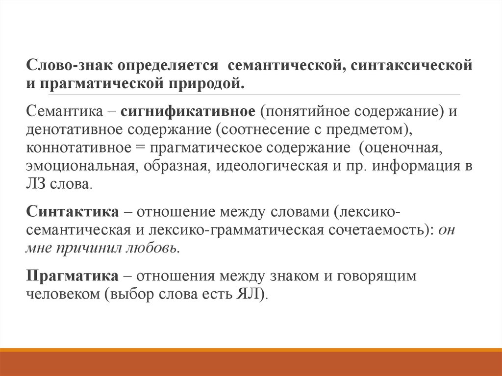 Слово-знак определяется семантической, синтаксическойи прагматической природой.