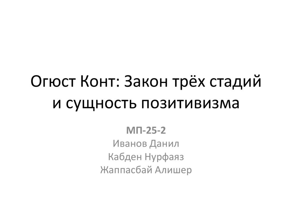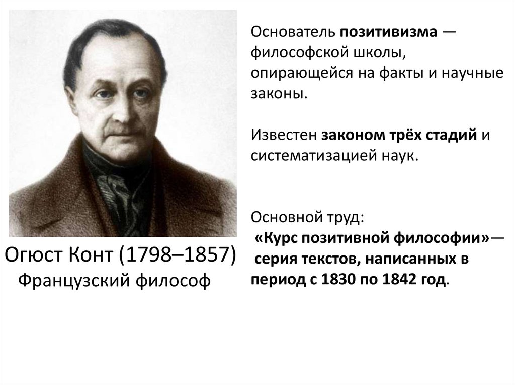 1. Огюст Конт: Закон трёх стадий и сущность позитивизма