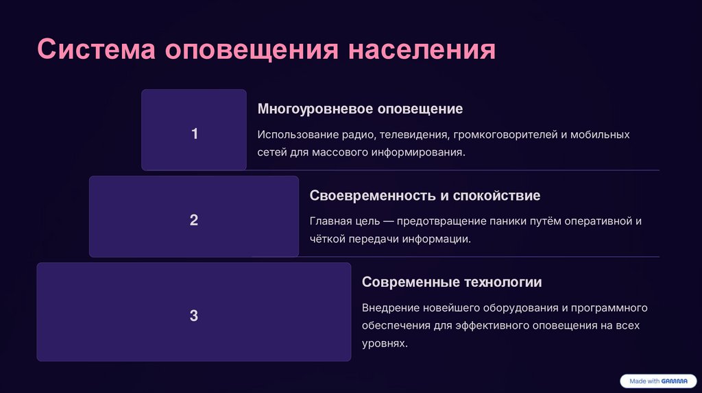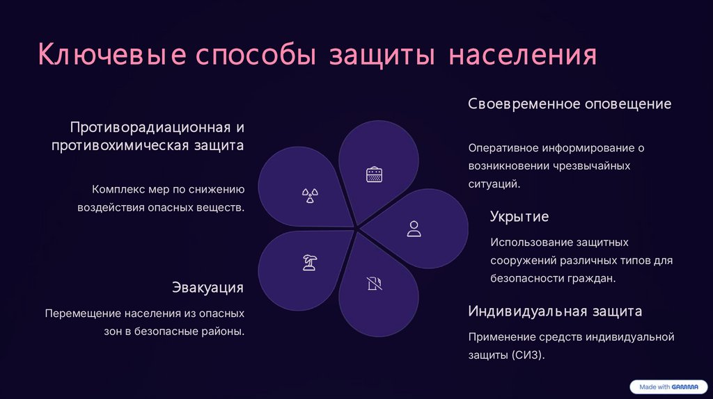 Кл ючев ы е способы защиты населенияСвоевременное оповещение