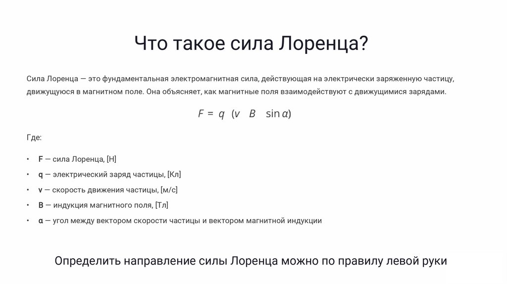 Что такое сила Лоренца?Сила Лоренца — это фундаментальная электромагнитная сила, действующая на электрически заряженную частицу,