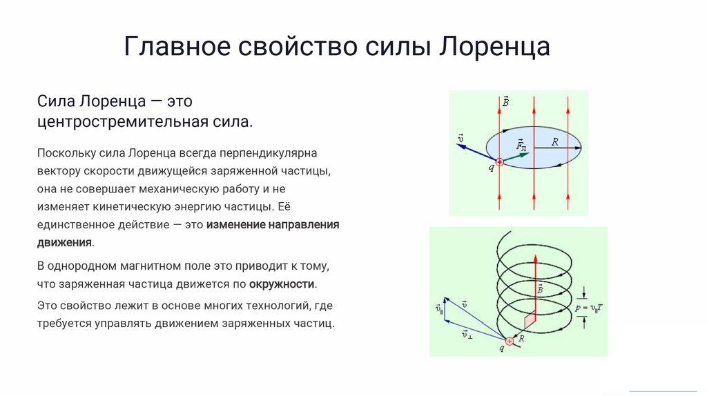 Главное свойство силы ЛоренцаСила Лоренца — это