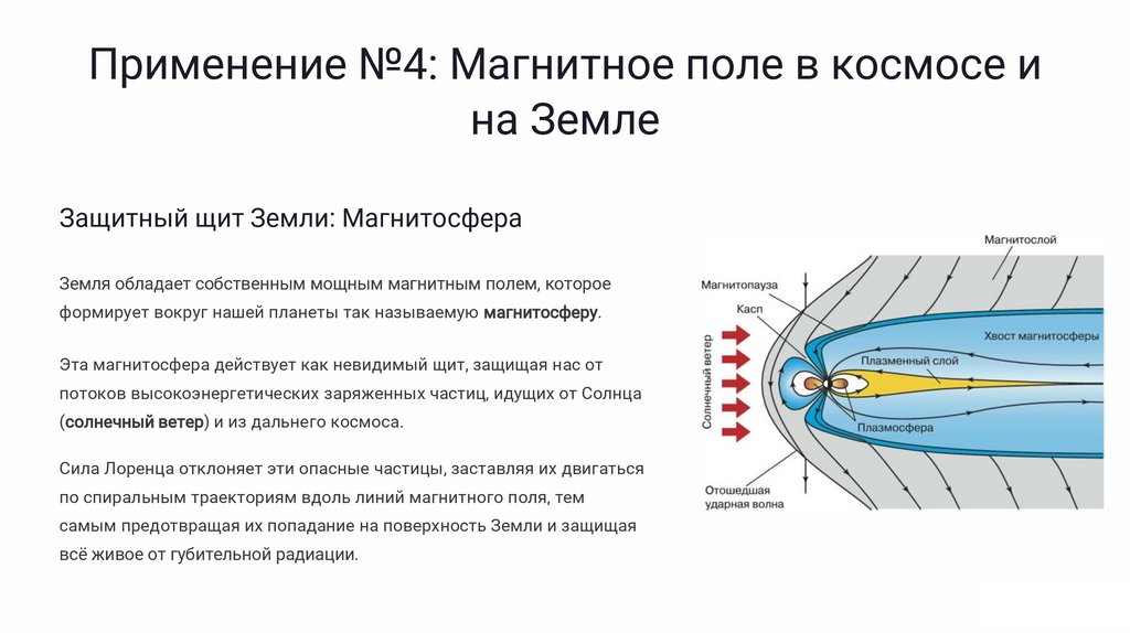Сила Лоренца отклоняет эти опасные частицы, заставляя их двигаться