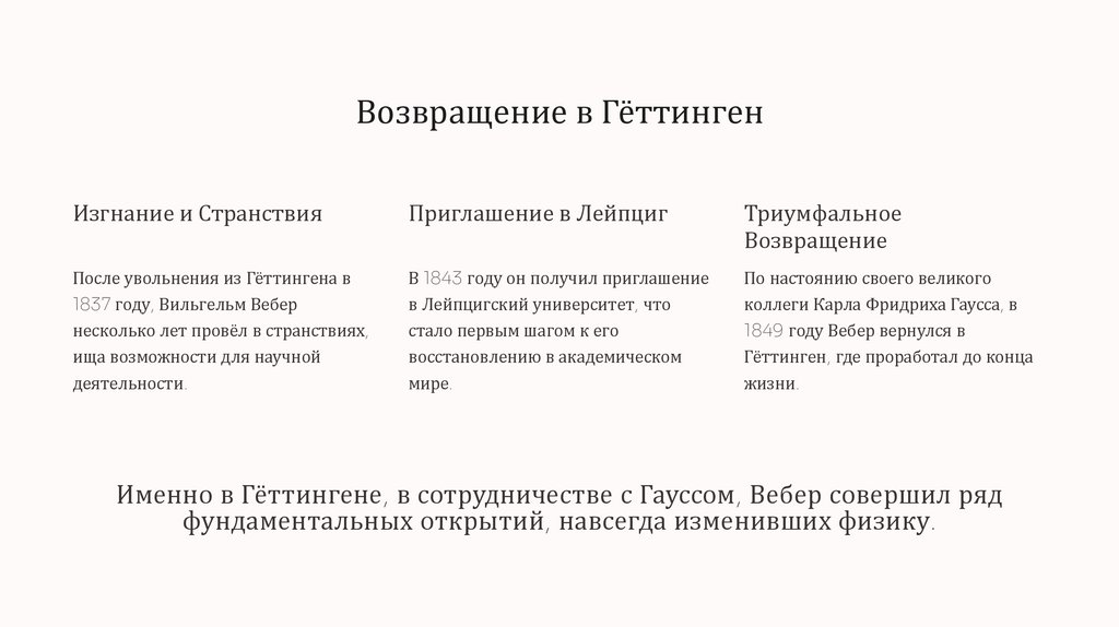 Именно в Гёттингене, в сотрудничестве с Гауссом, Вебер совершил ряд