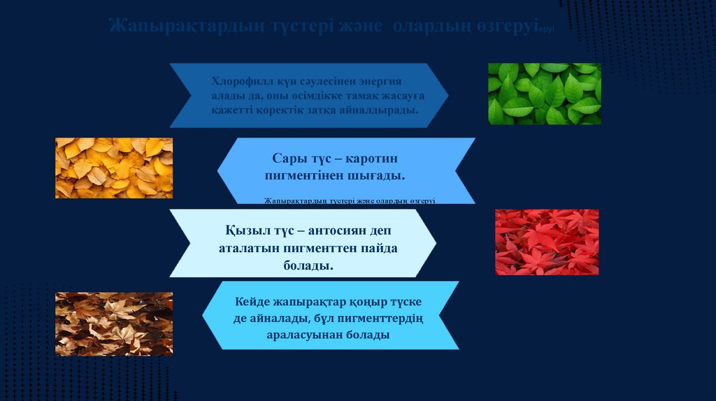 Жапырақтардың түстері және олардың өзгеруіеруіХлорофилл күн сәулесінен энергия
