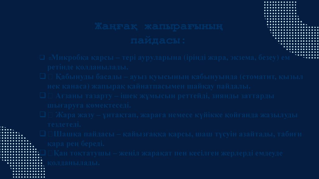 жапырақтардың емдік қасиеттерінің маңызын да түсіндік.