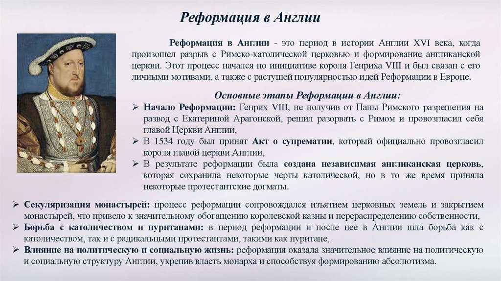 церкви. Этот процесс начался по инициативе короля Генриха VIII и был связан с его