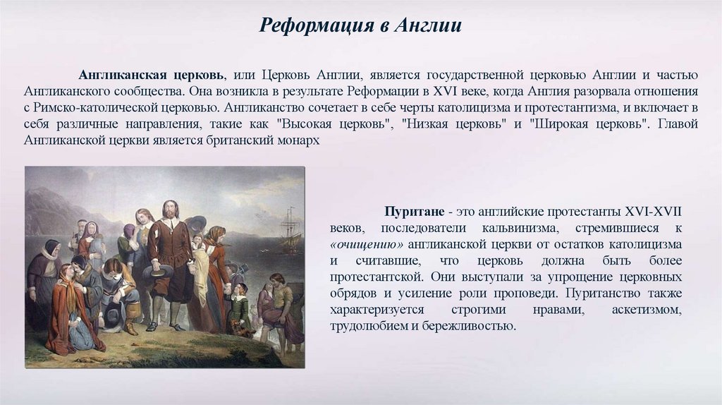 Реформация в АнглииАнгликанская церковь, или Церковь Англии, является государственной церковью Англии и частью