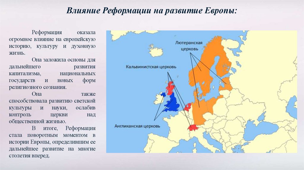 Влияние на политическую и социальную жизнь: реформация оказала значительное влияние на политическую