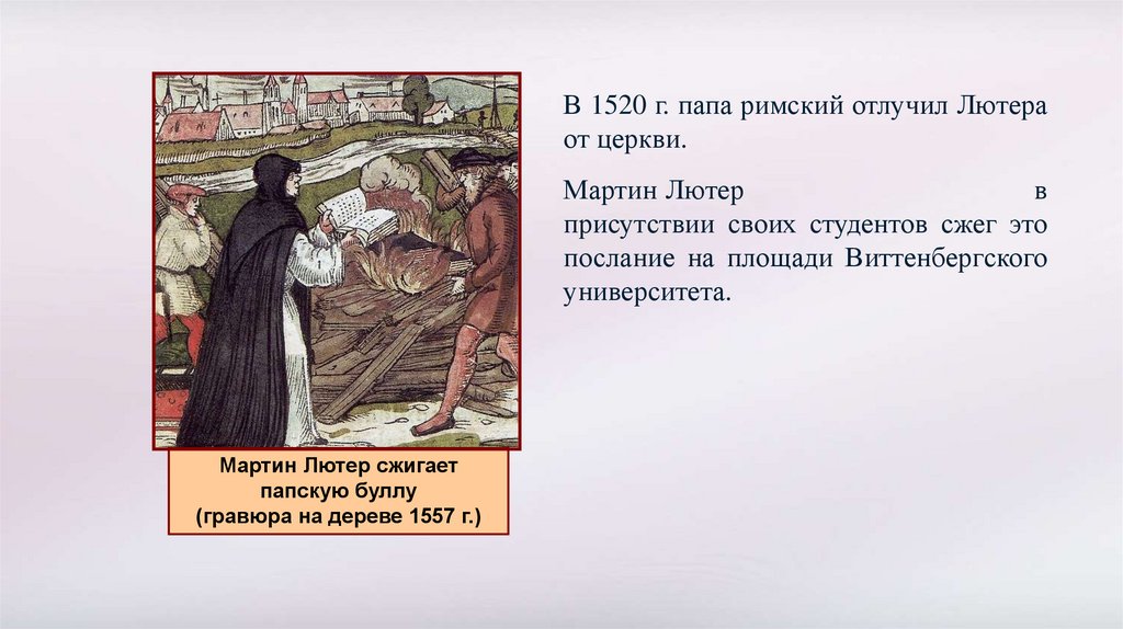 В 1520 г. папа римский отлучил Лютераот церкви.