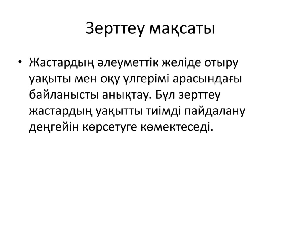 Зерттеу мақсаты• Жастардың әлеуметтік желіде отыру