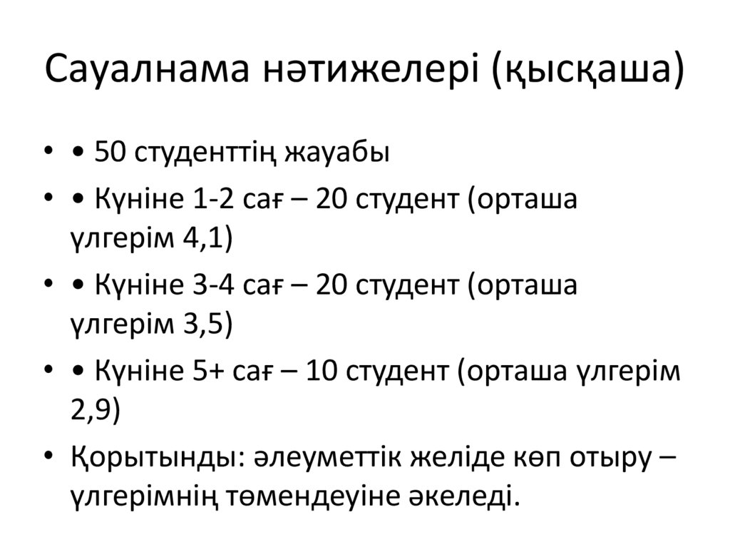 • Қорытынды: әлеуметтік желіде көп отыру –