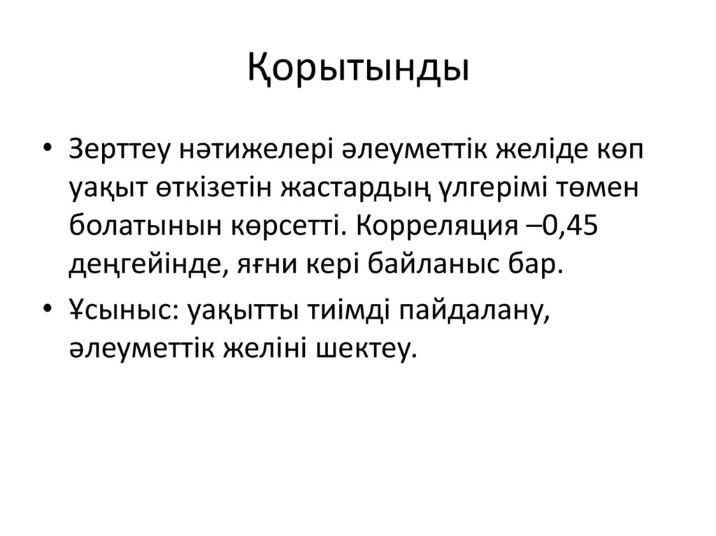 Қорытынды• Зерттеу нәтижелері әлеуметтік желіде көп