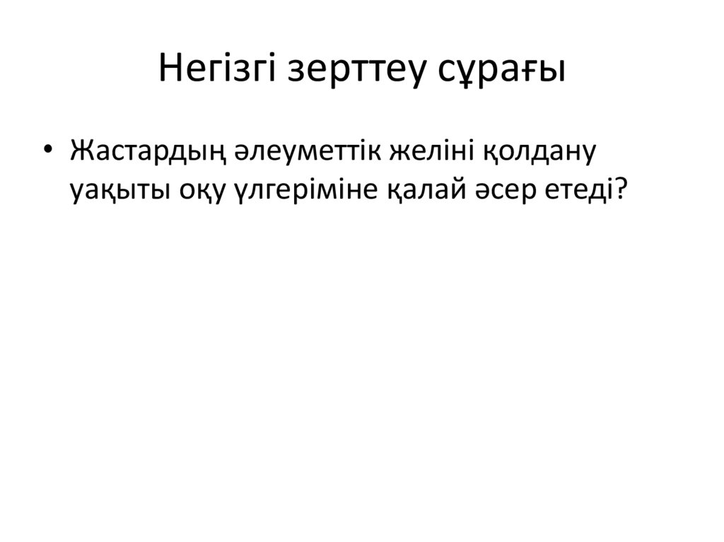 Негізгі зерттеу сұрағы• Жастардың әлеуметтік желіні қолдану