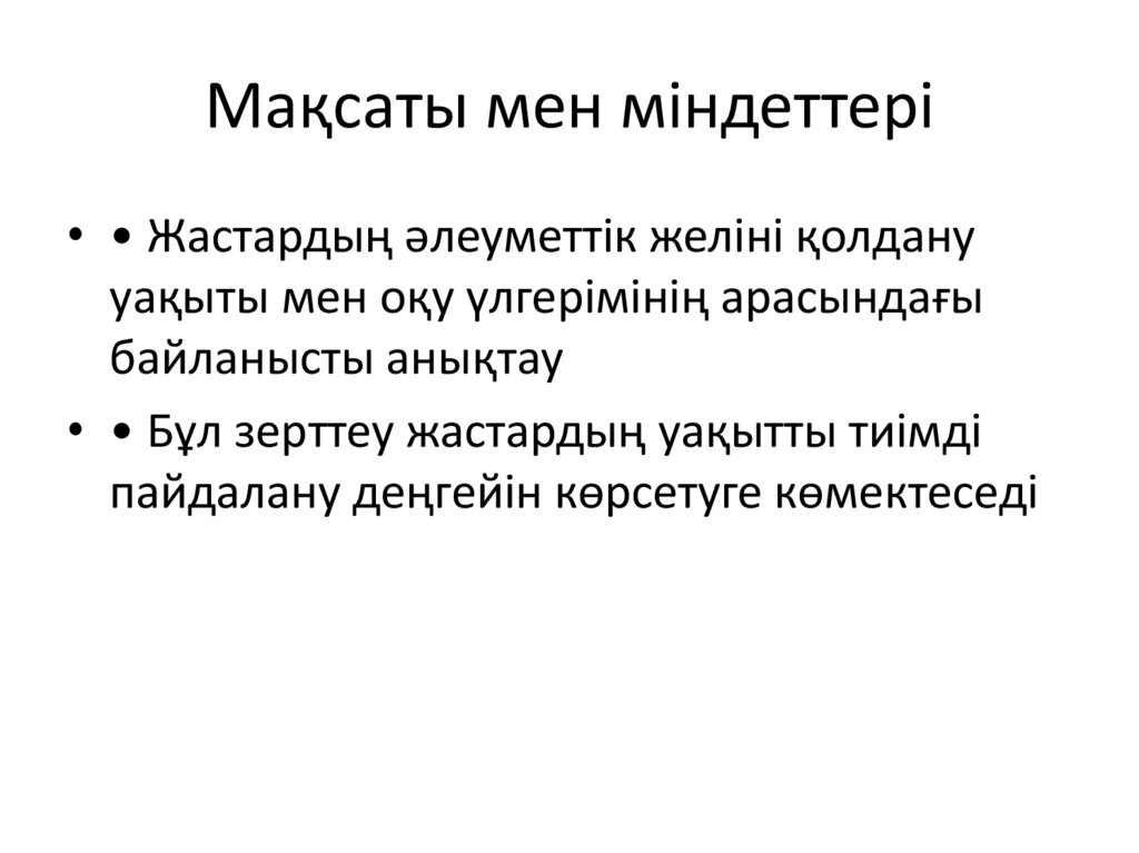 Мақсаты мен міндеттері• • Жастардың әлеуметтік желіні қолдану