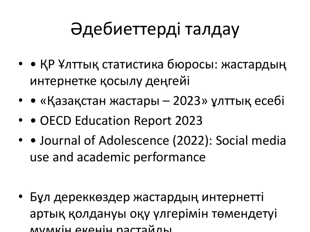 Әдебиеттерді талдау• • ҚР Ұлттық статистика бюросы: жастардың