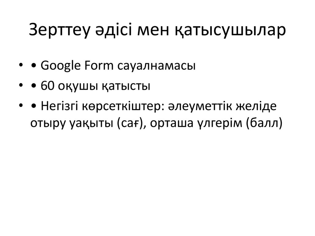 Зерттеу әдісі мен қатысушылар• • Google Form сауалнамасы
