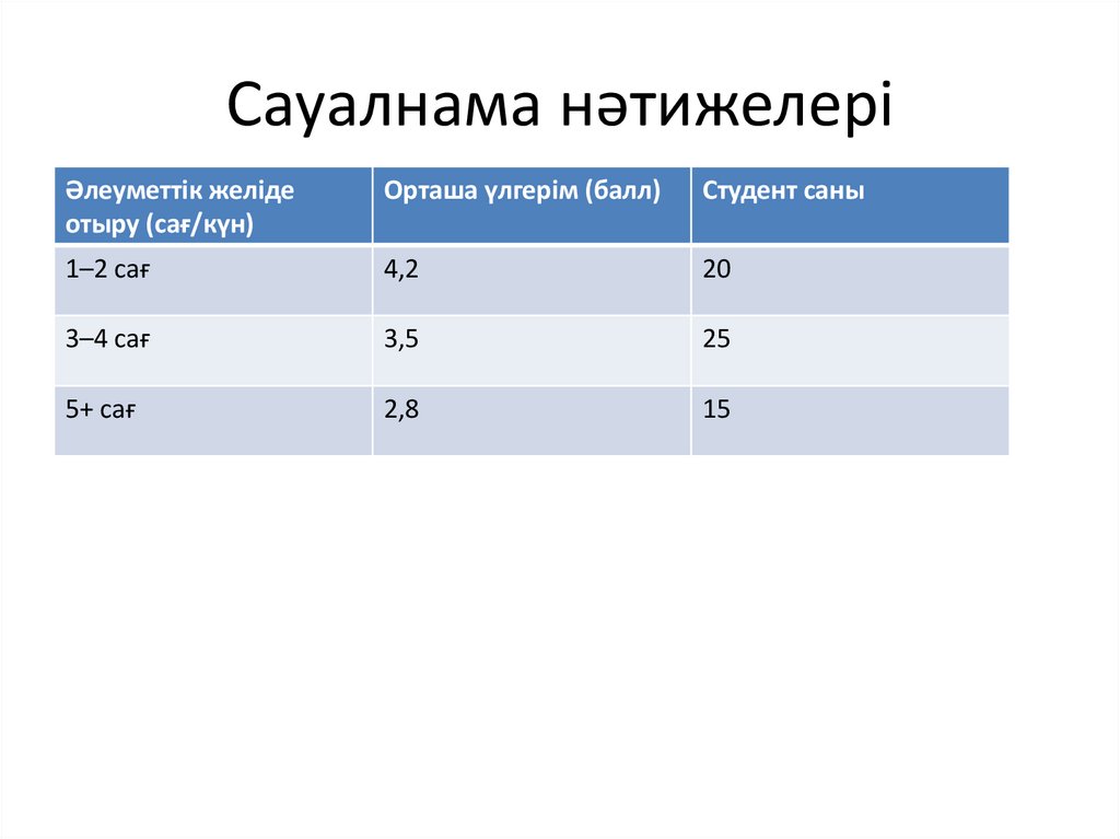 Сауалнама нәтижелеріӘлеуметтік желіде