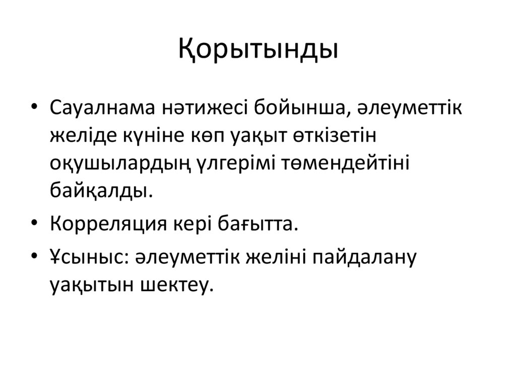 Қорытынды• Сауалнама нәтижесі бойынша, әлеуметтік