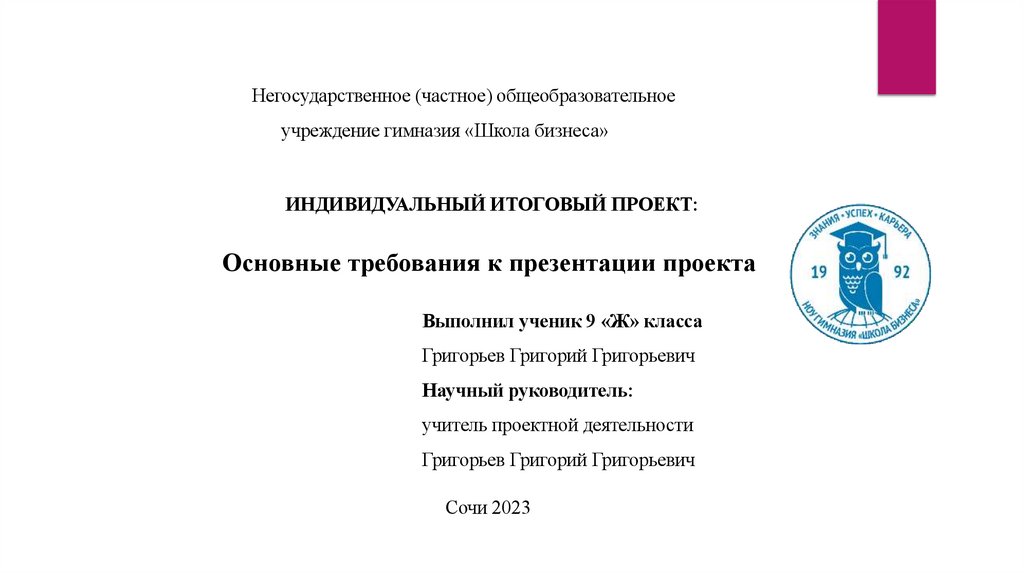 Негосударственное (частное) общеобразовательноеучреждение гимназия «Школа бизнеса»