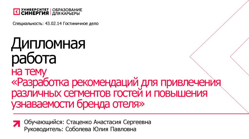 Специальность: 43.02.14 Гостиничное делоДипломная
