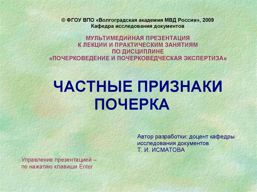 © ФГОУ ВПО «Волгоградская академия МВД России», 2009Кафедра исследования документов