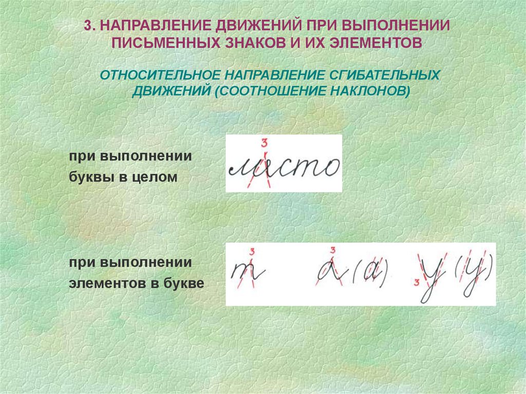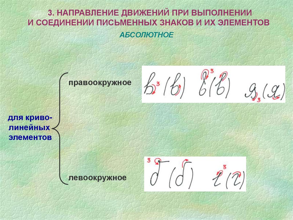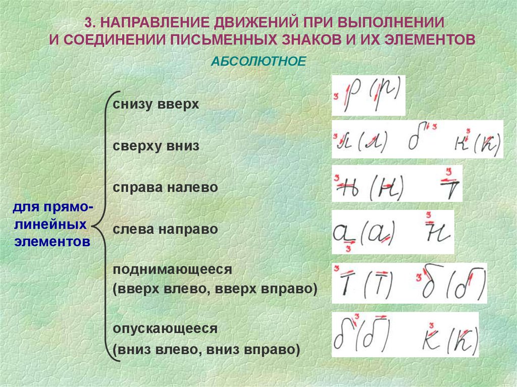 3. НАПРАВЛЕНИЕ ДВИЖЕНИЙ ПРИ ВЫПОЛНЕНИИПИСЬМЕННЫХ ЗНАКОВ И ИХ ЭЛЕМЕНТОВ