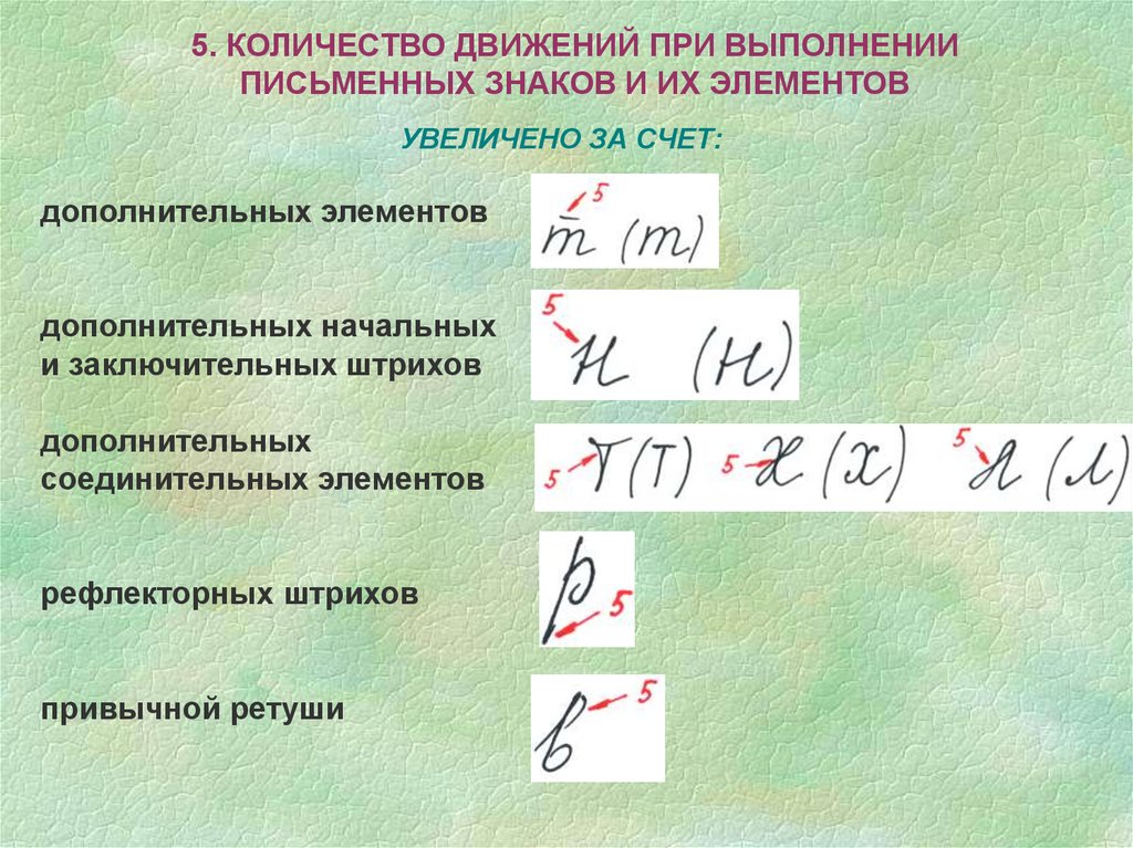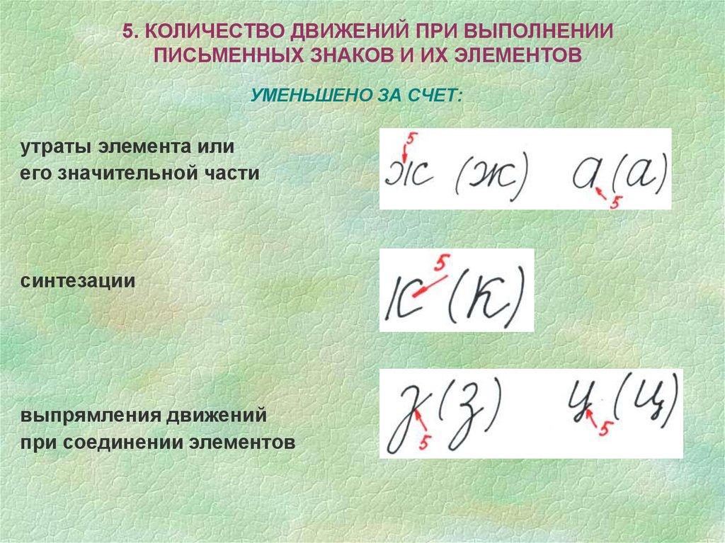 5. КОЛИЧЕСТВО ДВИЖЕНИЙ ПРИ ВЫПОЛНЕНИИПИСЬМЕННЫХ ЗНАКОВ И ИХ ЭЛЕМЕНТОВ