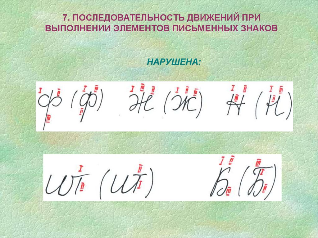 7. ПОСЛЕДОВАТЕЛЬНОСТЬ ДВИЖЕНИЙ ПРИВЫПОЛНЕНИИ ЭЛЕМЕНТОВ ПИСЬМЕННЫХ ЗНАКОВ