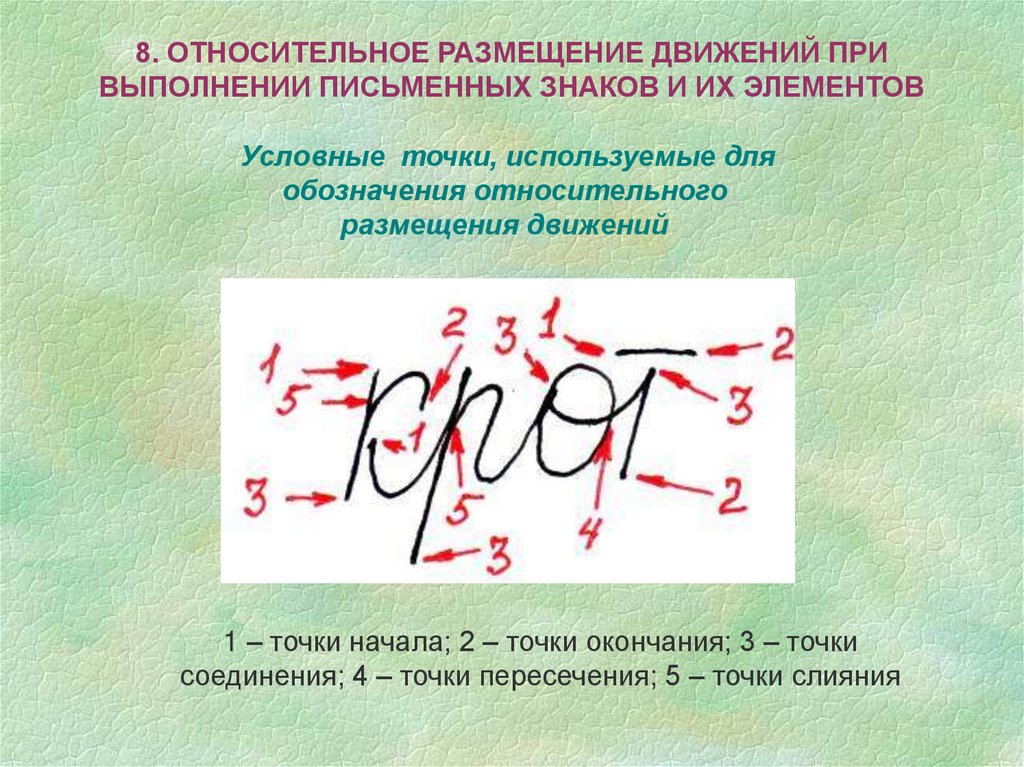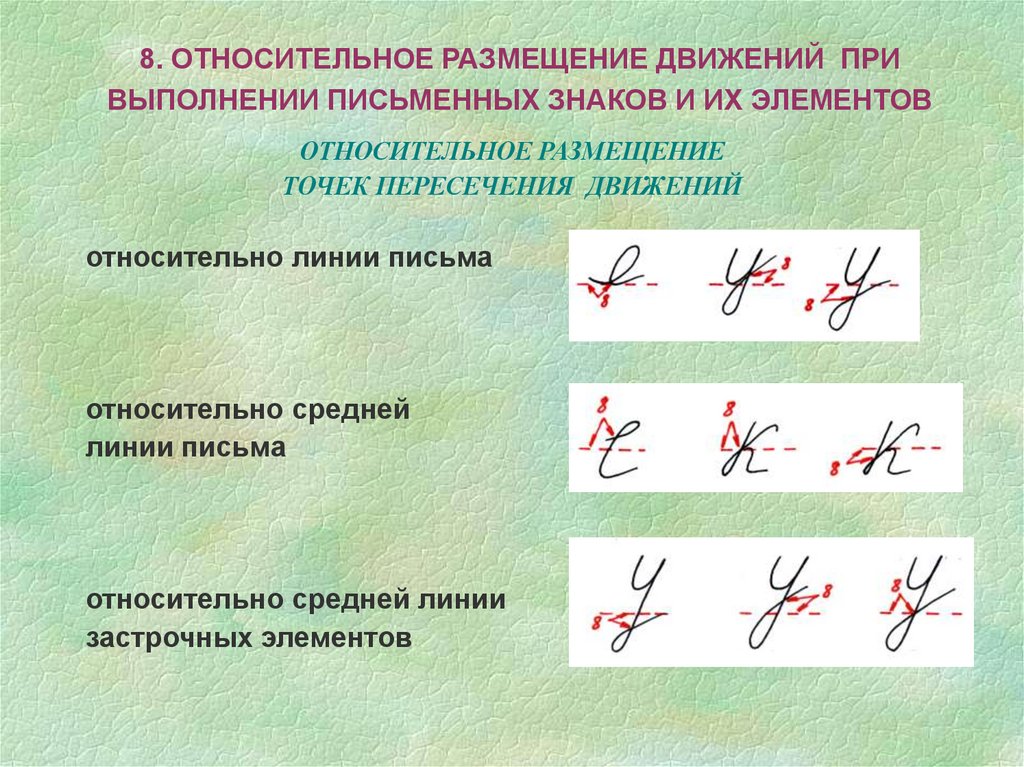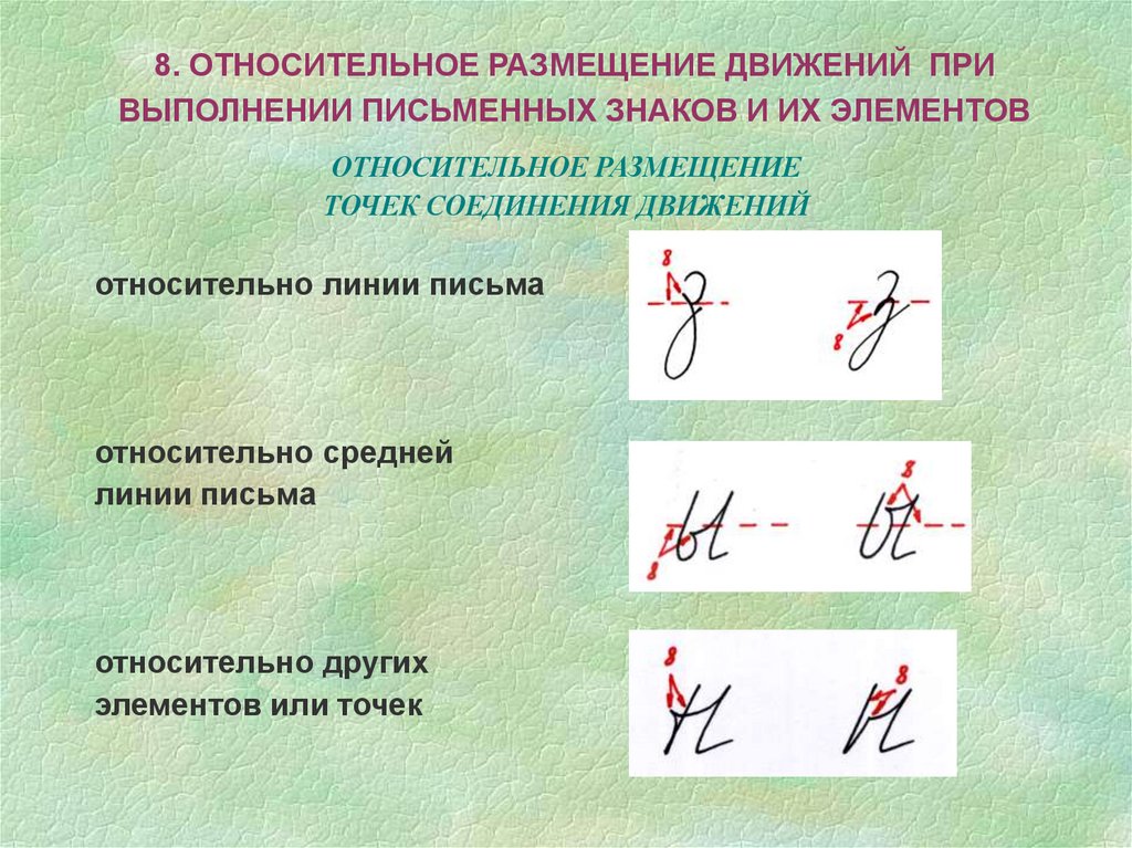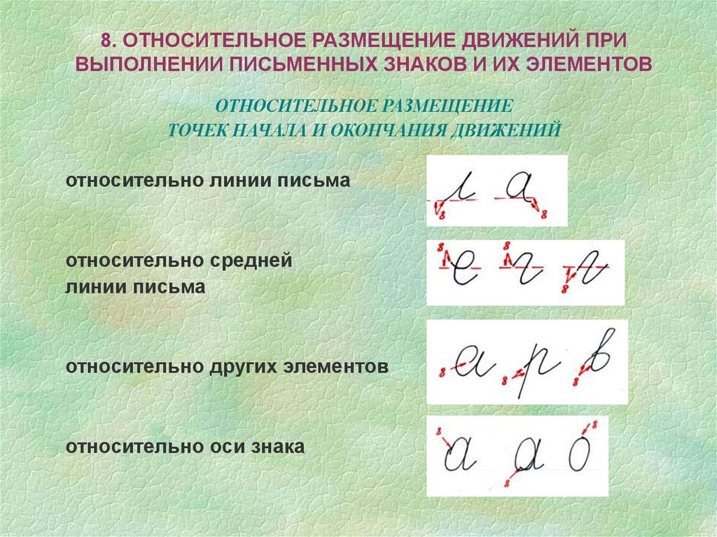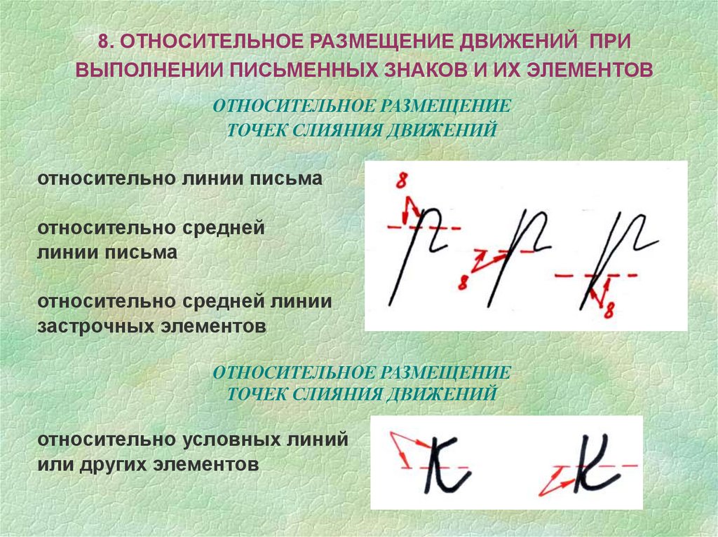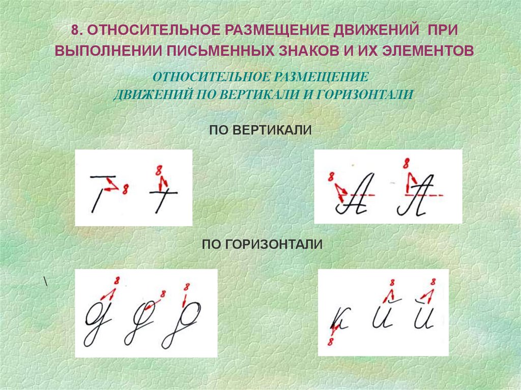 8. ОТНОСИТЕЛЬНОЕ РАЗМЕЩЕНИЕ ДВИЖЕНИЙ ПРИВЫПОЛНЕНИИ ПИСЬМЕННЫХ ЗНАКОВ И ИХ ЭЛЕМЕНТОВ