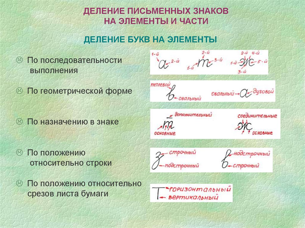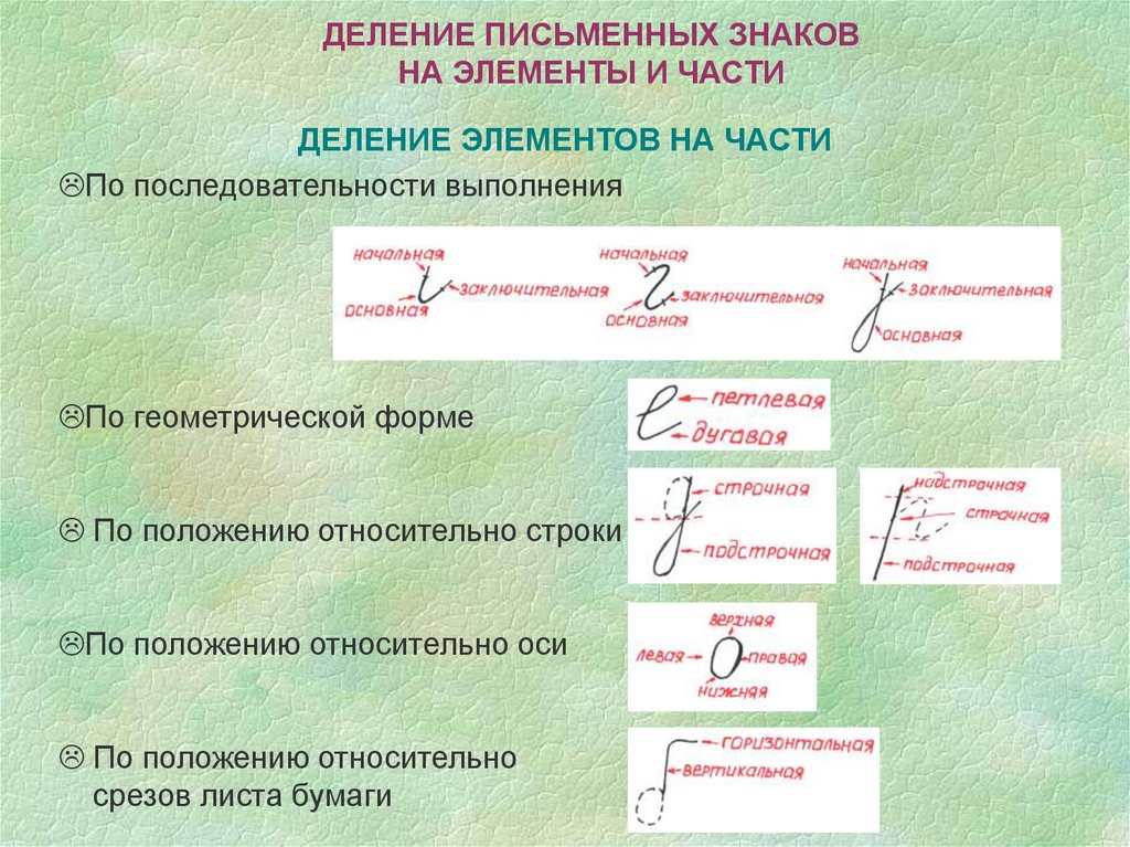 ДЕЛЕНИЕ ПИСЬМЕННЫХ ЗНАКОВНА ЭЛЕМЕНТЫ И ЧАСТИ
