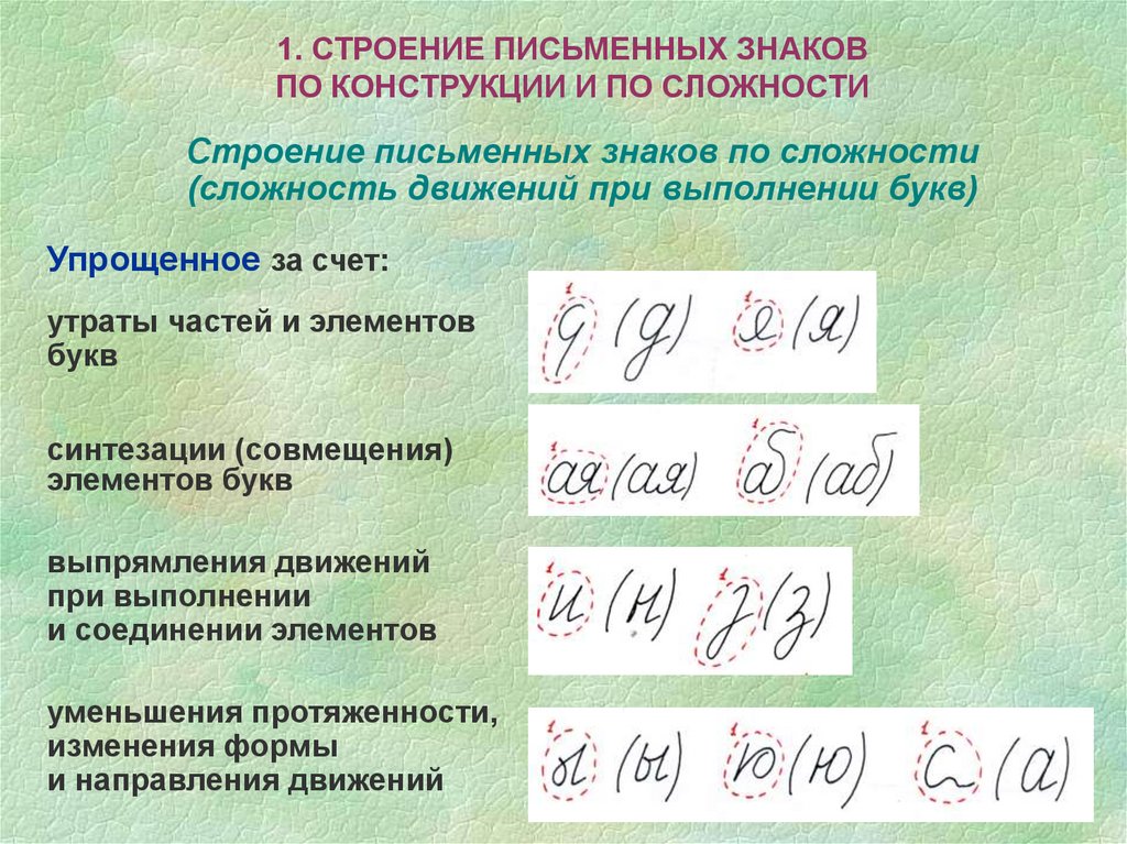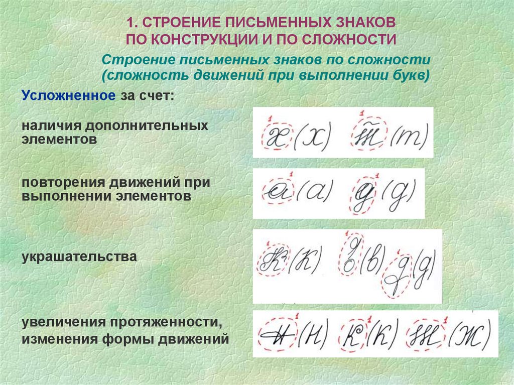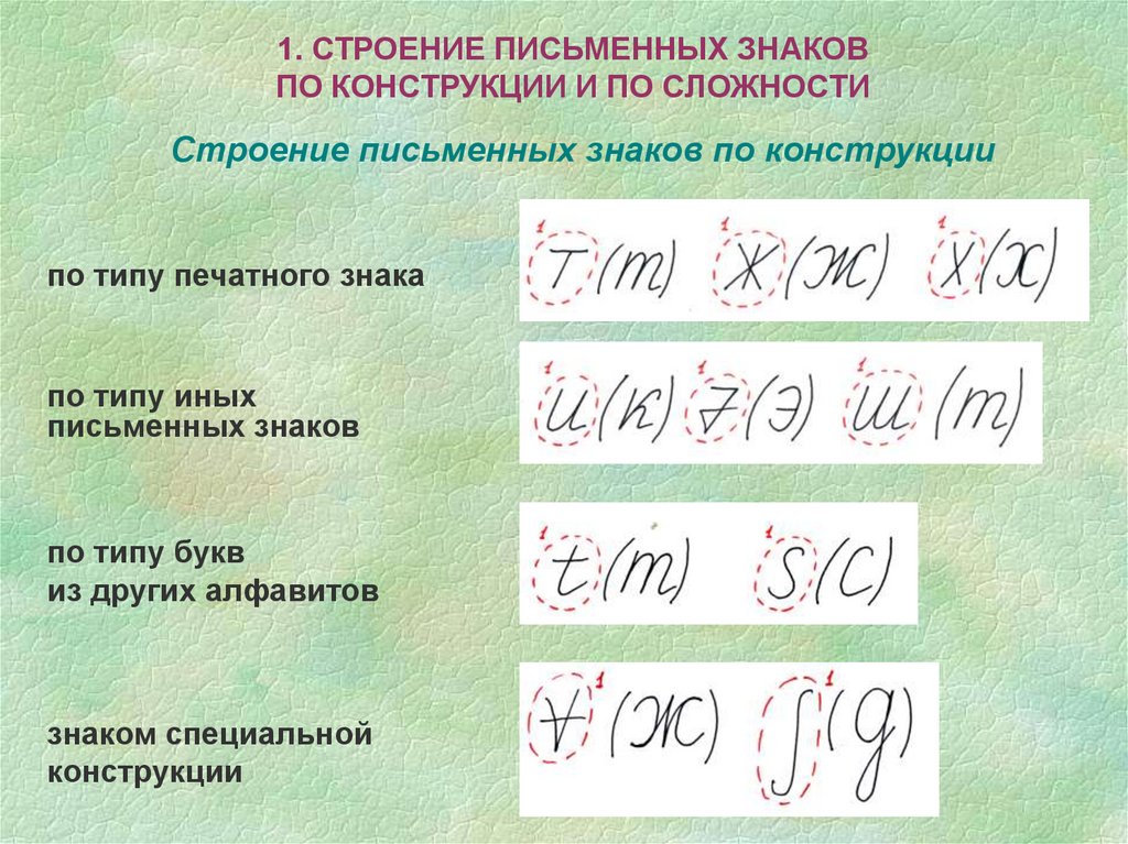 1. СТРОЕНИЕ ПИСЬМЕННЫХ ЗНАКОВПО КОНСТРУКЦИИ И ПО СЛОЖНОСТИ